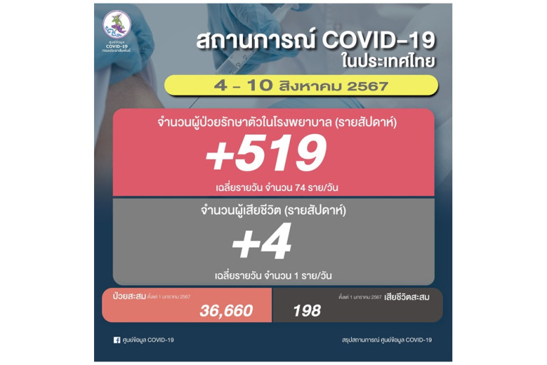 วันที่ 12 ส.ค.67 เพจเฟซบุ๊ก ศูนย์ข้อมูล COVID-19 โพสต์ข้อความระบุว่า...