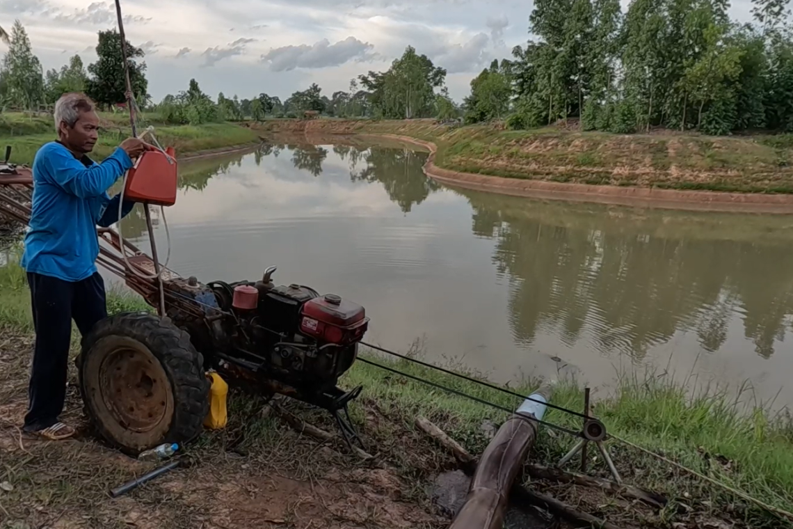 โดยชาวนาหลายราย ที่มีที่นาอยู่ใกล้กับแหล่งน้ำตามธรรมชาติ ทั้งลำห้วย หนอง คลอง บึงต่างๆ ต่างนำรถไถนาเดินตาม มาติดตั้งดัดแปลง เป็นเครื่องสูบน้ำ เพื่อเร่งสูบน้ำใส่นาข้าวของตนเอง เพื่อบำรุงไม่ให้ต้นข้าวของตนเองเหี่ยวเฉา เพื่อที่ต้นข้าวสามารถยืนต้นเจริญเติบโตต่อไปได้ จนกว่าจะมีน้ำฝน หรือพายุฝนเข้ามา และในขณะเดียวกัน ยังพบว่าแหล่งน้ำตามธรรมชาติ ที่ชาวนาได้สูบน้ำใส่นากันนั้น ก็ได้เริ่มแห้งขอดลงอย่างเห็นได้ชัด