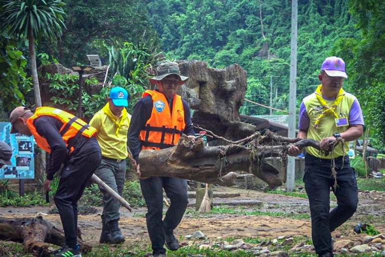 วันที่ 13 ส.ค.67 พ.ต.ท.ธวัชชัย สุรินต๊ะ ผบ.ร้อย ตชด.๓๓๖/จิตอาสา 904 รหัส 3 - 2ก 084 พร้อมกำลังพลจิตอาสาและกำลังพลชุดช่วยเหลือผู้ประสบภัย ร้อย ตชด.336 รวม 15 นาย ร่วมกับ จนท.อุทยานแห่งชาติถ้ำปลา-น้ำตกผาเสื่อ จังหวัดแม่ฮ่องสอน ได้นำรถบรรทุกน้ำ 6 ล้อ (ขนาด 6,000 ลิตร) เข้าช่วยเหลือพัฒนาทำความสะอาดแหล่งท่องเที่ยวถ้ำปลา หน่วยพิทักษ์อุทยานแห่งชาติที่ ถผ 1 (ถ้ำปลา) ม.1 ต.ห้วยผา อ.เมือง จว.แม่ฮ่องสอน ซึ่งได้รับผลกระทบน้ำป่าไหลหลากฉับพลันทำให้พื้นที่มีเศษซากต้นไม้ กิ่งไม้ วัชพืช และดินโคลนสะสมในพื้นที่