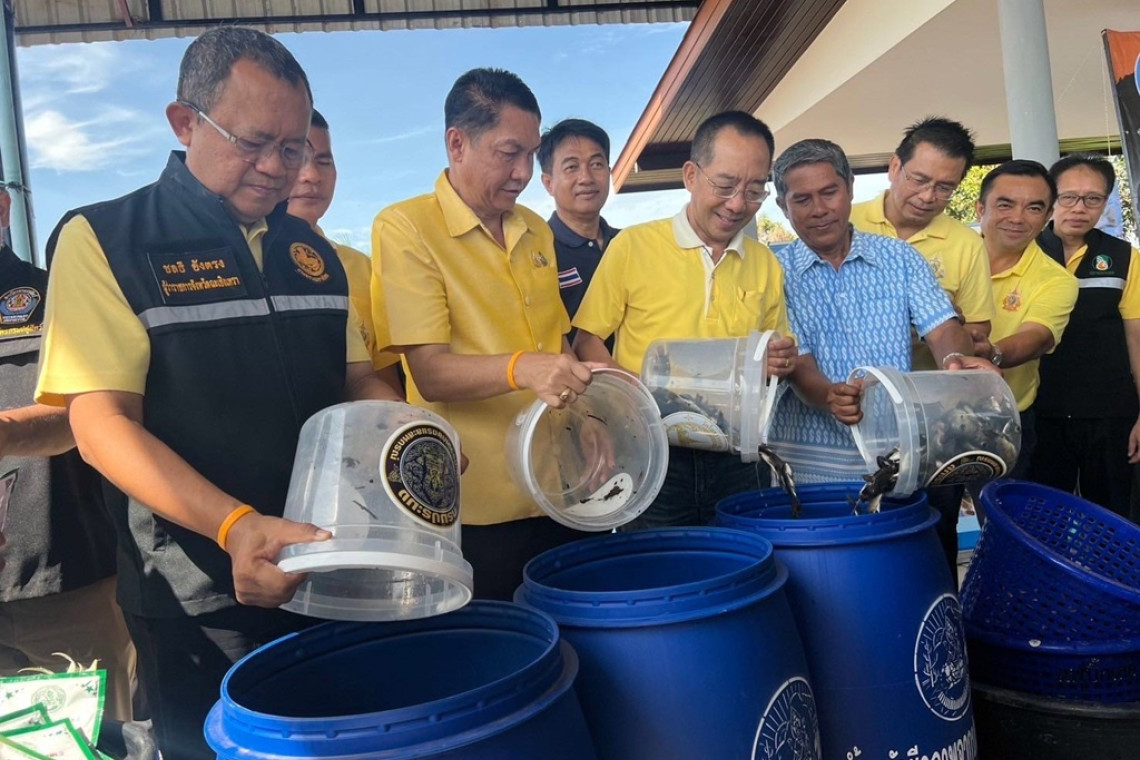 ด้านนายอดิศร์ กฤษณวงศ์ ผู้บริหารสูงสุดสายงานรัฐกิจและเอกชนสัมพันธ์  ซีพีเอฟ กล่าวว่า ซีพีเอฟผนึกพลังในองค์กรร่วมสนับสนุนกรมประมงในการกำจัดปลาหมอคางดำมาแล้ว 6 จังหวัด และวันนี้มอบแห อวน อุปกรณ์จับปลาให้ประมงฉะเชิงเทราใช้ในการจัดกิจกรรมจับปลา พร้อมทั้งสนับสนุนอาหารและน้ำดื่มให้กับผู้ร่วมงานลงแขก-ลงคลอง  นอกจากนี้ ซีพีเอฟได้รับการประสานงานว่าโครงการผลิตน้ำหมักชีวภาพขาดแคลนถังบรรจุ บริษัทจึงได้ต่อยอดนำถังพลาสติกที่ใช้แล้วขนาดบรรจุ 1,000 ลิตรจากโรงงานผลิตอาหารสัตว์ซีพีเอฟ จำนวน 200 ใบมอบให้สถานีพัฒนาที่ดินในจังหวัดต่างๆ ใช้ผลิตน้ำหมักชีวภาพเพื่อส่งให้การยางฯ ต่อไป