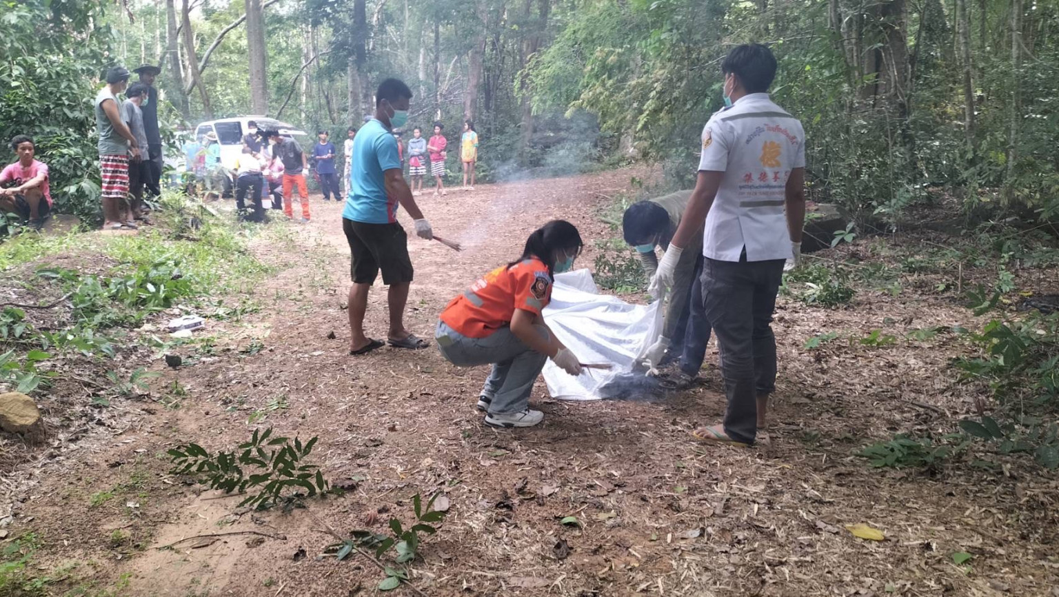 วันนี้(18 ส.ค.67) เจ้าหน้าที่ตำรวจประจำศูนย์รับแจ้งเหตุ สภ.บัวเชด จ.สุรินทร์ ได้รับแจ้งจากพลเมืองดีที่ไปเข้าป่าไปหาเก็บเห็ดในป่าว่าได้พบศพ นอนเสียชีวิต อยู่ในป่าไม้ใกล้ทางเดินศพมีลักษณะเน่ามีกลิ่นเหม็นเน่ามีสีดำ หลังได้รับแจ้งแล้า ได้แจ้งให้ พ.ต.อ.สราวุธ ศรีวอฑูรย์ศักดิ์ ผกก.สภ.บัวเชด ได่รับทราบ แจ้งหน่วยกู้ภัย สุรินทร์จุดอำเภอบัวเชด กู้ชีพ.อบต.จรัส อ.บัวเชด จ.สุรินทร์ ทราบ พร้อมประสาน ร.ต.อ. ชาธัช สายบุตร ร้อยเวรสภบัวเชด เดินทางออกไปตรวจสอบที่เกิดเหตุ สถานที่เกิดเหตุ บริเวณป่าติดค่ายลูกเสือเก่า หมู่ 1 ตำบลจรัส อำเภอบัวเชด จังหวัดสุรินทร์  ทราบชื่อ ผู้เสียขีวิต นายเกียรติยศ สัญชาติ ไทย อายุ 43 ปี