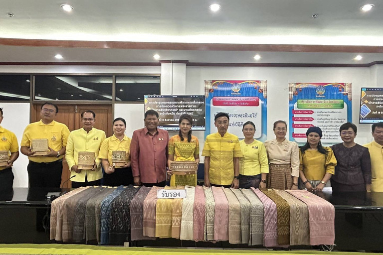 วันที่19 ส.ค. 67 ผู้สื่อข่าวรายงานว่าที่ห้องยศสุนทรชั้น 3 ศาลากลางจังหวัดยโสธรนายชาญชัย ศรศรีวิชัย รองผู้ว่าราชการจังหวัดยโสธร เป็นประธานการประกวดผ้าลายพระราชทาน "ผ้าลายสิริวชิราภรณ์" และงานหัตถกรรม ระดับจังหวัด ประจำปี 2567เพื่อสืบต่อมรดกหัตถศิลป์ไทย ส่งเสริมอัตลักษณ์ความเป็นไทย โดยมี นางสินีนาฎ ทองสุข นายกหลอกกาชาดจังหวัดและ ประธานแม่บ้านมหาดไทยจังหวัดยโสธร นายบรรลือ พลับพลึง พัฒนาการจังหวัดยโสธร พร้อมคณะกรรมการฯ ร่วมพิจารณากลั่นกรองคัดเลือกผ้าและงานหัตถกรรมตามแนวทางและหลักเกณฑ์การประกวดฯ เพื่อรวบรวมผ้าและงานหัตถกรรมส่งเข้าประกวดระดับภูมิภาค