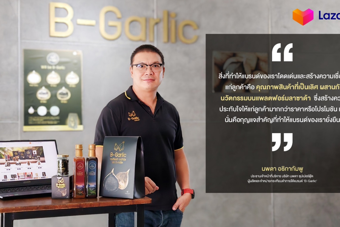 ลาซาด้า ในฐานะแพลตฟอร์มอีคอมเมิร์ซชั้นนำในเอเชียตะวันออกเฉียงใต้ ได้เป็นส่วนหนึ่งในการผลักดันให้สินค้าไทยคุณภาพดีได้เข้าถึงกลุ่มลูกค้าที่กว้างขึ้นด้วยเครื่องมือการตลาดอีคอมเมิร์ซที่จะช่วยให้ร้านค้าท้องถิ่นสามารถยกระดับมาตรฐานของแบรนด์ และต่อยอดการเติบโตได้อย่างมั่นคง ซึ่งรวมถึง ‘กระเทียมดำ B – Garlic’ แบรนด์ผู้ผลิตที่ปลุกปั้นกระเทียมดำ ผู้นำตลาดกระเทียมดำไทย อีกทั้งสร้างยอดขายบนแพลตฟอร์ม LazMall ได้มากกว่า 2 แสนบาทต่อเดือน