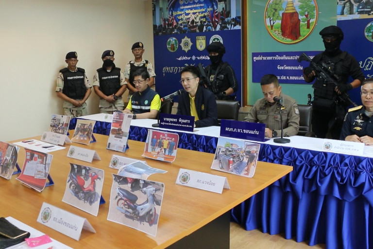 เมื่อเวลา 12.00 น. วันที่ 22 ส.ค.2567 ที่ศูนย์อำนวยการป้องกันและปราบปรามยาเสพติด จ.ขอนแก่น ชั้น 4 ศาลากลาง จ.ขอนแก่น นายยุทธพร พิรุณสาร รอง ผวจ.ขอนแก่น พร้อมด้วย พล.ต.ต.อนุวัตร สุวรรณภูมิ ผบก.ภ.จว.ขก.และ นพ.อภิชัย ลิมานนท์ นายแพทย์ สสจ.ขอนแก่น ร่วมกันแถลงข่าสผลการดำเนินงานตามแผนปฎิบัติการเร่งรัดการดำเนินงานป้องกัน ปราบปรามและแก้ไขปัญหายาเสพติด ระยะเร่งด่วน 3 เดือน ครั้งที่ 13 โดยทำการปิดล้อมตรวจค้น พื้นที่เป้าหมาย 30 หมู่บ้าน 117 จุด รวบผู้ต้องหาซึ่งเป็นผู้ค้า 35 คนผู้เสพ 80 คน พร้อมของกลางยาบ้า 4,531 เม็ด อาวุธปืน 1 กระบอก เครื่องกระสุน 24 นัด และทำการยึดทรัพย์รวม 1,577,410 บาท ขณะทีการตรวจหาสารเสพติดเจ้าหน้าที่และบุคลากรภาครัฐ 10,230 ราย พบสารเสพติด 12 ราย โดยได้ดำเนินการให้ออก ดำเนินการทางวินัยและนำเข้ารับการบำบัดรักษา ขณะที่การตรวจสารเสพติดพระภิกษุสงฆ์ 1,293 รูป พบสารเสพติด 51 รูป โดยให้ลาสิกขาและนำเข้าบำบัด