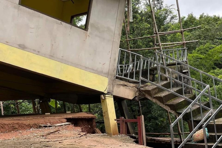 และในเส้นทางเดียวกัน มีถนนพังช่วงบ้านแผ่นดินทอง-พญาพิภักดิ์ บริเวณเลยสามแยกด่านทหารไปประมาณ 50 ม. ถนนโดนน้ำซัดจนผุพัง ปัจจุบันผิวถนนเสียหายทั้งหมด รถทุกชนิดไม่สามารถผ่านได้