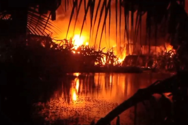 อย่างไรก็ตาม เจ้าหน้าที่ยังคงวางกำลังฉีดน้ำอย่างต่อเนื่อง เพื่อจำกัดพื้นที่ไม่ให้ลุกลามเพิ่มเติม ต้องใช้เวลาอีกพอสมควร จึงจะทำให้เพลิงสงบได้