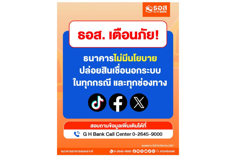 เมื่อวันที่ 26 ส.ค.67 ธนาคารอาคารสงเคราะห์ (ธอส.) ขอแจ้งเตือนภัยกรณีมีกลุ่มมิจฉาชีพแอบอ้างใช้บัญชีปลอมและตัดต่อคลิปวิดีโอประชาสัมพันธ์การขอสินเชื่อของธนาคาร เพื่อใช้ในการโฆษณาเงินกู้นอกระบบ บนแพลตฟอร์มออนไลน์ต่างๆ โดย ธอส. ขอยืนยันว่า ไม่มีนโยบายในการปล่อยสินเชื่อนอกระบบ ดังนั้น จึงไม่มีส่วนเกี่ยวข้องกับการดำเนินการทั้งหมดนี้ อย่างไรก็ตาม ธนาคารอยู่ระหว่างดำเนินการทางกฎหมายกับกลุ่มมิจฉาชีพที่ตัดต่อคลิปวิดีโอดังกล่าว โดยธนาคารขอเตือนไปยังผู้ที่พบเห็นคลิปวิดีโอนี้ อย่าหลงเชื่อกลโกงหรือดำเนินการตามที่มิจฉาชีพแจ้งอย่างเด็ดขาด และขอความร่วมมือไม่ส่ง หรือแชร์ข้อมูลดังกล่าวต่อในช่องทางสื่อสังคมออนไลน์