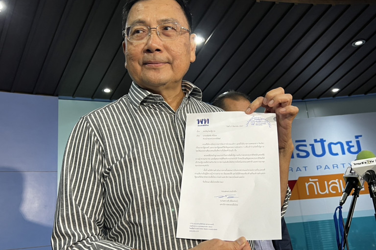 ผู้สื่อข่าวรายงานว่า จากนั้น น.ต.สุธรรมได้นำหนังสือเชิญจากพรรคเพื่อไทย มาแสดงต่อสื่อมวลชน โดยหนังสือดังกล่าวระบุข้อความว่า ตามที่ได้ทรงมีพระบรมราชโองการโปรดเกล้าฯ แต่งตั้งให้น.ส.แพทองธาร ชินวัตร เป็นนายกรัฐมนตรี และนายกรัฐมนตรีได้เชิญพรรคการเมืองต่างๆ เพื่อเข้าร่วมจัดตั้งรัฐบาล โดยได้แถลงผ่านสื่อมวลชนเป็นที่ทราบกันโดยทั่วไปแล้วนั้น พรรคเพื่อไทยในฐานะแกนนำในการจัดตั้งรัฐบาลเห็นว่าพรรคประชาธิปัตย์มีความรู้ ความสามารถ และมีอุดมการณ์ที่จะทำงานร่วมกันได้ จึงขอเรียนเชิญพรรคประชาธิปัตย์ได้เข้าร่วมรัฐบาลเพื่อร่วมกันบริหารราชการแผ่นดินให้เกิดประโยชน์แก่ประเทศชาติ และความผาสุกของประชาชนต่อไป