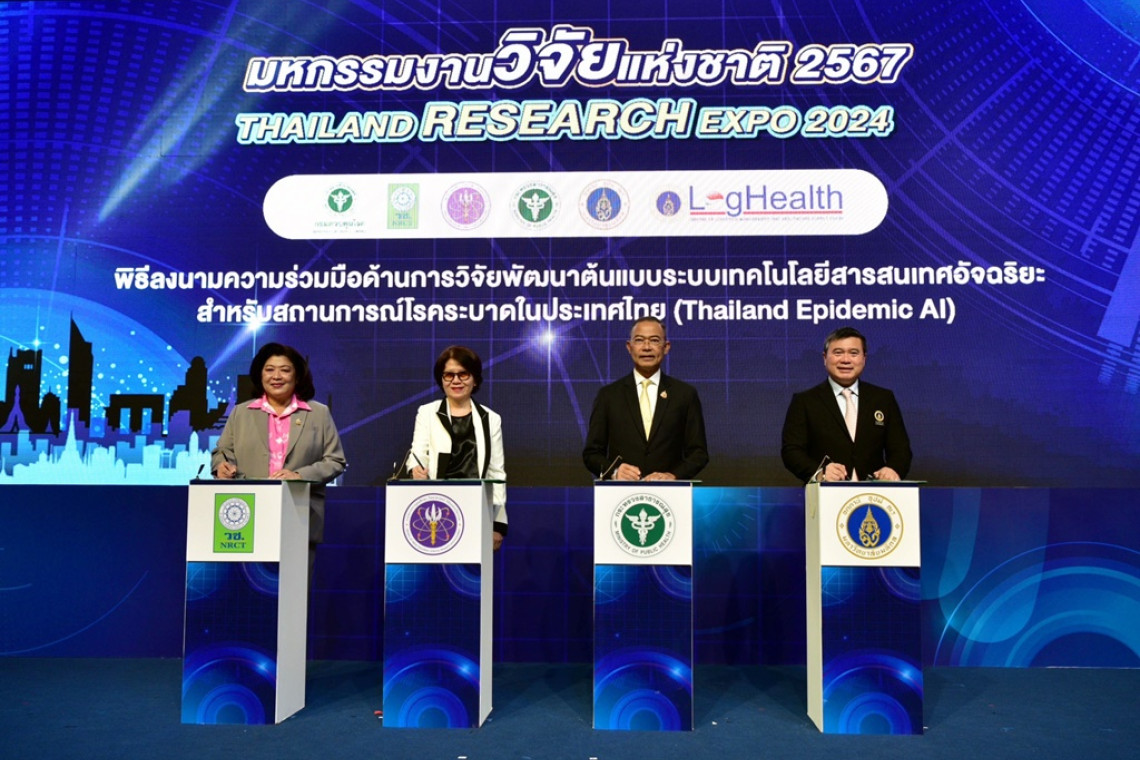 นายเพิ่มสุข สัจจาภิวัฒน์ ปลัดกระทรวงการอุดมศึกษา วิทยาศาสตร์ วิจัยและนวัตกรรม (อว.) พร้อมด้วย นายแพทย์กิตติศักดิ์ อักษรวงศ์ รองปลัดกระทรวงสาธารณสุข ร่วมกันแถลงข่าวความร่วมมือด้านการวิจัยและแถลงผลงาน เรื่อง “งานวิจัยและนวัตกรรมการพัฒนาต้นแบบระบบเทคโนโลยีสารสนเทศอัจฉริยะสำหรับสถานการณ์โรคระบาดในประเทศไทย (Thailand Epidemic AI)” โดยมี ดร.วิภารัตน์ ดีอ่อง ผู้อำนวยการสำนักงานการวิจัยแห่งชาติ กล่าวเปิดงานแถลงข่าวในครั้งนี้ ซึ่งมี รองศาสตราจารย์ ดร.สิทธิวัฒน์ เลิศศิริ รักษาการแทนรองอธิการบดี มหาวิทยาลัยมหิดล และนายแพทย์วิชาญ บุญกิติกร ผู้อำนวยการกองระบาดวิทยา กรมควบคุมโรค กระทรวงสาธารณสุข กล่าวแสดงความยินดีผลสำเร็จของงานวิจัยและนวัตกรรมการพัฒนาต้นแบบระบบเทคโนโลยีสารสนเทศอัจฉริยะสำหรับสถานการณ์โรคระบาดในประเทศไทย (Thailand Epidemic AI) และมี รองศาสตราจารย์ ดร.ดวงพรรณ  กริชชาญชัย หัวหน้าศูนย์การจัดการโลจิสติกส์และโซ่อุปทานสุขภาพ คณะวิศวกรรมศาสตร์ มหาวิทยาลัยมหิดล กล่าวถึงวัตถุประสงค์ของงาน ซึ่งจัดขึ้นภายในงานมหกรรมงานวิจัยแห่งชาติ ประจำปี 2567 (Thailand Research Expo 2024) ณ เวทีกิจกรรม Highlight Stage ห้องบางกอกคอนเวนชันเซ็นเตอร์ ชั้น 22 โรงแรมเซ็นทาราแกรนด์ และบางกอกคอนเวนชันเซ็นเตอร์ เซ็นทรัลเวิลด์ กรุงเทพฯ