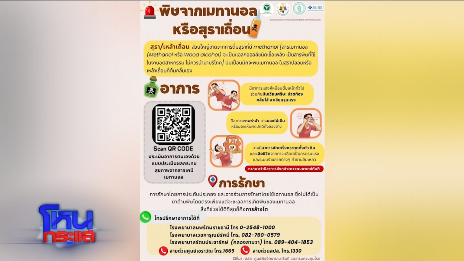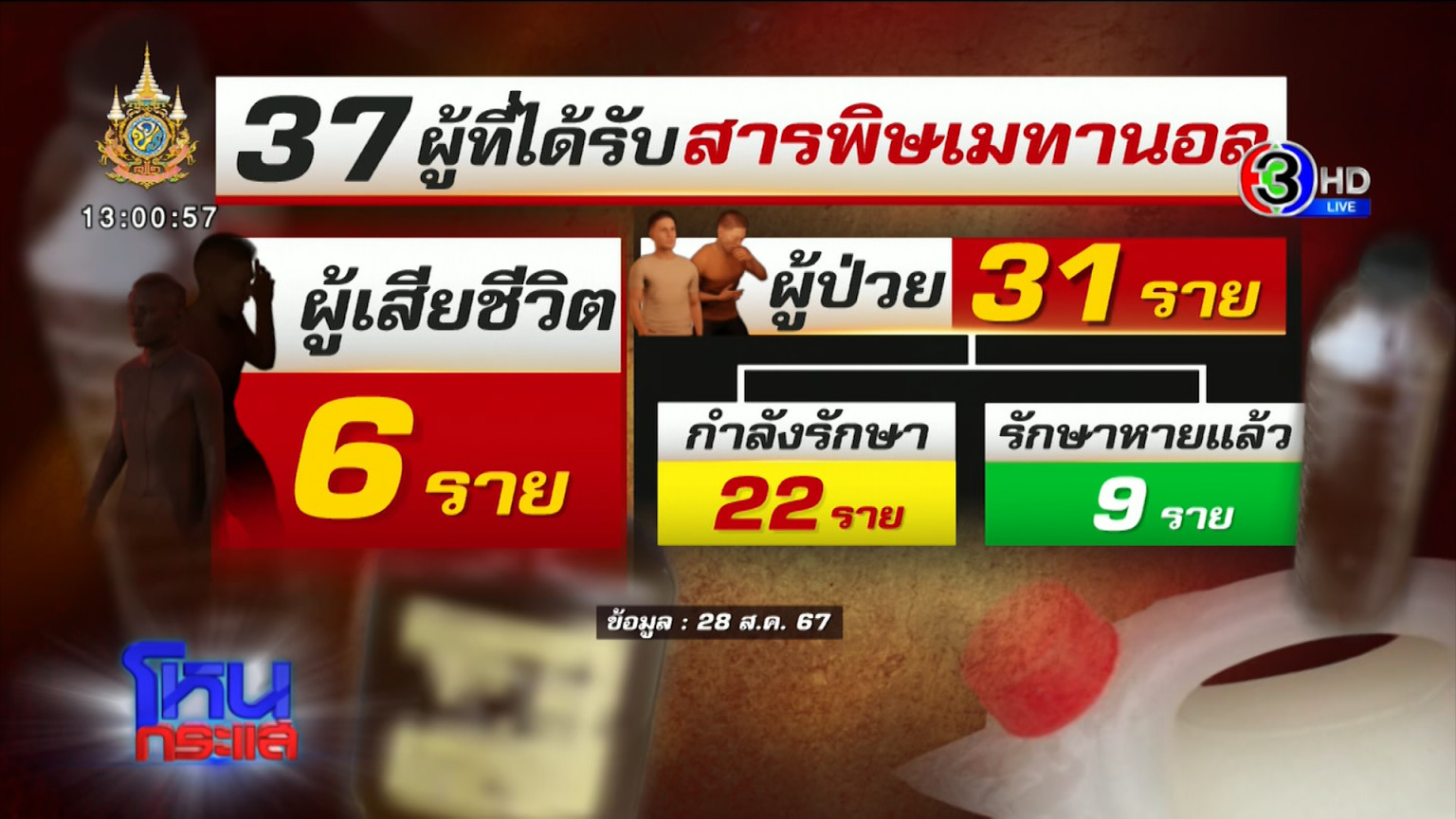 ตอนนี้ผู้ป่วยทั้งหมด 39 คน ผู้เสียชีวิต 6 ราย ผู้ป่วยที่รักษาแล้วหาย 15 ราย ผู้ป่วยกำลังรักษา 18 ราย แล้วผมเชื่อว่ามีคนกินมากกว่า 39 คน แล้วคนเหล่านั้นไปไหน อาการเป็นยังไง เมทานอลที่อยู่ในร่างกายจะส่งผลถึงเมื่อไหร่ พี่คูณอาการหนักแล้ว ตาเหลือกโวยวาย อาเจียน นั่งพิงกำแพง แล้วยังไงต่อ?