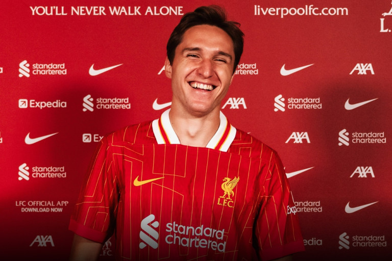 เมื่อวันที่ 30 ส.ค.67 สำนักข่าวต่างประเทศ รายงานว่า สโมสร "ลิเวอร์พูล" ยอดทีมในศึกพรีเมียร์ลีก ประเทศอังกฤษ แถลงเปิดตัว "เฟเดริโก้ เคียซ่า" ปีกจอมบุกจากสโมสร "ยูเวนตุส" ทีมดังในศึกกัลโช่ เซเรีย อา ประเทศอิตาลี ค่าตัวรวมแล้วประมาณ 12.5 ล้านปอนด์ เซ็นสัญญาเป็นเวลา 4 ปี พร้อมสวมเสื้อหมายเลข 14