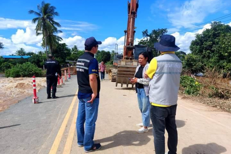 ผส.ทล.4 ลงพื้นที่ติดตาม สถานการณ์น้ำท่วมบริเวณทางหลวงหมายเลข 1195 ระหว่าง กม.12+725 - 13+600 อ.สวรรคโลก จ.สุโขทัย