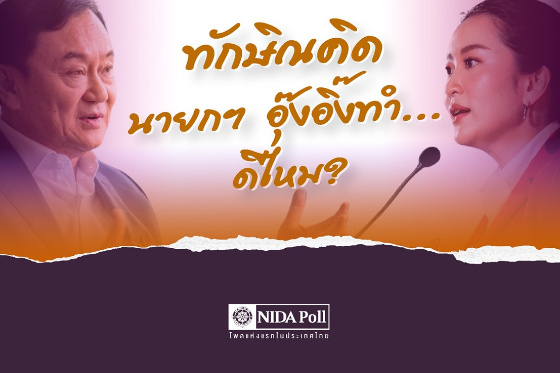 วันที่ 1 ก.ย.67 ผู้สื่อข่าวรายงาน ว่า ศูนย์สำรวจความคิดเห็น “นิด้าโพล” สถาบันบัณฑิตพัฒนบริหารศาสตร์ (นิด้า) เปิดเผยผลการสำรวจของประชาชน เรื่อง ทักษิณคิด นายกฯ อุ๊งอิ๊งทำ … ดีไหม?” ทำการสำรวจระหว่างวันที่ 26-28 สิงหาคม 2567 จากประชาชนที่มีอายุ 18 ปีขึ้นไป กระจายทุกภูมิภาค ระดับการศึกษา อาชีพ และรายได้ ทั่วประเทศ รวมทั้งสิ้น จำนวน 1,310 หน่วยตัวอย่าง เกี่ยวกับการแสดงวิสัยทัศน์ของคุณทักษิณ ชินวัตร ต่อนโยบายด้านเศรษฐกิจของประเทศไทย การสำรวจอาศัยการสุ่มตัวอย่างโดยใช้ความน่าจะเป็นจากบัญชีรายชื่อฐานข้อมูลตัวอย่างหลัก (Master Sample) ของ “นิด้าโพล” สุ่มตัวอย่างแบบหลายขั้นตอน (Multi-stage Sampling) เก็บข้อมูลด้วยวิธีการสัมภาษณ์ทางโทรศัพท์ โดยกำหนดค่าความเชื่อมั่น ร้อยละ 97.0