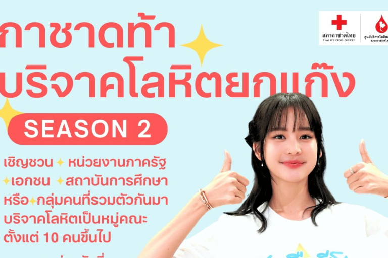 ศูนย์บริการโลหิตแห่งชาติ สภากาชาดไทย เดินหน้าขอท้า“บริจาคเลือดยกแก๊ง Season 2” ชวนหน่วยงานทุกภาคส่วน และประชาชนทั่วไป เติมเต็มโลหิตให้เพียงพอพร้อมส่งต่อโลหิตที่มีคุณภาพปลอดภัยให้แก่ผู้ป่วย รวมพลบริจาคโลหิตตั้งแต่ 10 คนขึ้นไป ระหว่างวันที่ 9 – 13, 16 - 20, 23 - 27 กันยายน 2567 ณ ศูนย์บริการโลหิตแห่งชาติ ถนนอังรีดูนังต์ และภาคบริการโลหิตแห่งชาติ 12 แห่งทั่วประเทศ รับเสื้อยืดสุดชิค “ฉันคือฮีโร่” เป็นที่ระลึกแทนคำขอบคุณ (สงวนสิทธิ์สำหรับผู้ลงทะเบียนล่วงหน้า และบริจาคโลหิตได้)