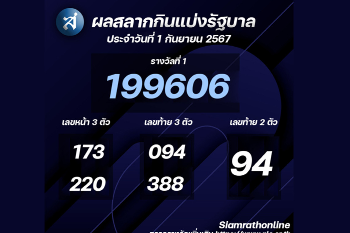 ผลสลากกินแบ่งรัฐบาลงวดประจำวันที่  1  กันยายน  2567