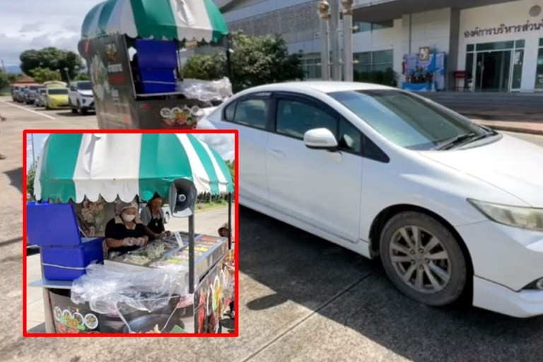 ผู้สื่อข่าวรายงานว่า ได้ขับรถอยู่บนถนนสุวรรณศรเส้นบ้านนา ขาเข้าตัวเมืองนครนายกได้เห็นรถยนต์เก๋งขับพ่วงร้านขายยำ เลยยกโทรศัพท์ขึ้นมาถ่ายภาพเพราะเห็นว่ามันแปลกดีปรกติจะเคยเห็นแต่ รถซาเล้งพ่วงข้าง และก็ส่วนใหญ่จะเห็นแต่เป็นรถกระบะแต่คันนี้เป็นรถยนต์เก๋ง ก็เลยรีบขับตามเพื่อมาถามความแปลกว่าทำไมถึงเอารถเก๋งมาพ่วงขายของ และแล้วก็ตามมาถึงที่บริเวณองค์การผู้บริหารส่วนจังหวัดตำบลพรหมณี อำเภอเมือง จังหวัดนครนายก ได้พบรถยนต์เก๋ง ฮอนด้า ซีวิค สีขาว ทะเบียน กทม.พ่วงมากับร้านขายยำ พอรถคันนี้จอดได้ไม่นานมีบรรดาลูกค้าสายยำพากันมารุมซื้อกันแน่นร้าน เพราะรถพ่วงยำร้านนี้มีความแปลกที่ตรงรถพ่วงนี่แหล่ะเป็นสังเกตุที่เด่นชัดและก็เรื่องของราคาเพราะทุกอย่างทุกเมนูราคาเพียงแค่ 20 บาท และก็มีหลายอย่างให้ลูกค้าเลือกซื้อเลือกยำ เมนูที่ขายดีสุดก็จะเป็น ยำปลาเซลล์มอล ยำปูม้า จะหมดก่อนเค้าเพื่อน