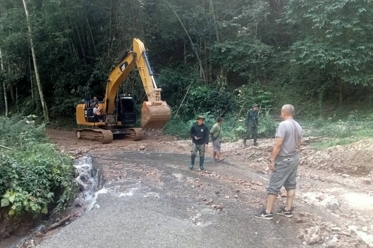 อำเภอเมืองแม่ฮ่องสอน เร่งเปิดเส้นทางค้าชายแดน บ้านห้วยผึ้ง ต.ห้วยผา อ.เมืองแม่ฮ่องสอน หลังเกิดดินภูเขาสไลด์ลงปิดทับอีกแล้ว ต้องใช้รถแบคโฮคันใหญ่จึงสามารถเปิดทางได้ แต่ก็ยังเสี่ยงที่จะถูกปิดซ้ำอีกครั้งถ้าฝนยังตกลงมาไม่หยุด