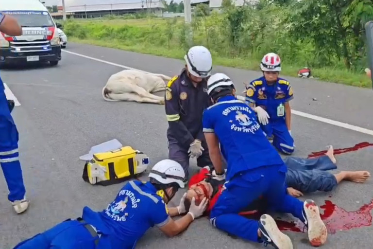 ผู้สื่อข่าวสอบถามนายวรบดินทร์ รุ่งโรจน์ชัยกุล หัวหน้าหน่วยกู้ภัยสยามรวมใจปู่อินทร์บุรีรัมย์ เล่าว่า เมื่อวันที่ 3 ก.ย.ได้รับแจ้งมีรถจักรยานยนต์บิ๊กไบค์ชนวัว บริเวณถนน 4 เลน สายนางรอง-บุรีรัมย์ มีผู้บาดเจ็บนอนอยู่กลางถนน จึงรีบนำกำลังเจ้าหน้าที่เข้าไปตรวจสอบ