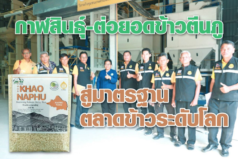 กลุ่มผลิตเมล็ดข้าวอินทรีย์ตีนภู (ศูนย์ข้าวชุมชนข้าวอินทรีย์ตำบลหนองห้าง) อำเภอกุฉินารายณ์ จังหวัดกาฬสินธุ์ มาตรฐาน Organic Thailand, GI, EU, USDA-NOP ต่อยอดผลผลิตจากแปลงใหญ่นาอินทรีย์ “ตีนภู” แปรรูปอีกหลายผลิตภัณฑ์ เพิ่มมูลค่าข้าวอินทรีย์ภูไท 3 เท่าตัว