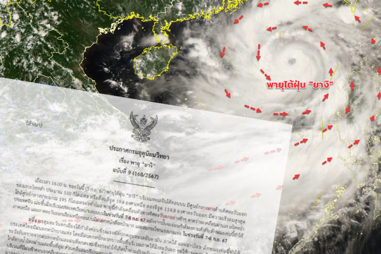 เมื่อวันที่ 5 ก.ย.67 ว่าที่ร้อยตรี ธนะสิทธิ์ เอี่ยมอนันชัย รองอธิบดีกรมอุตุนิยมวิทยา รักษาราชการแทนอธิบดีกรมอุตุนิยมวิทยา ออกประกาศกรมอุตุนิยมวิทยา เรื่อง พายุ “ยางิ” ฉบับที่ 9 (168/2567) ว่า เมื่อเวลา 16.00 น. ของวันนี้ (5 ก.ย. 67) พายุไต้ฝุ่น “ยางิ” บริเวณทะเลจีนใต้ตอนบน มีศูนย์กลางทางด้านทิศตะวันออกของเกาะไหหลำ ประมาณ 510 กิโลเมตร หรือที่ละติจูด 19.4 องศาเหนือ ลองจิจูด 114.8 องศาตะวันออก มีความเร็วลมสูงสุดใกล้ศูนย์กลางประมาณ 195 กิโลเมตรต่อชั่วโมง พายุนี้กำลังเคลื่อนตัวทางทิศตะวันตกอย่างช้าๆ คาดว่าจะเคลื่อนผ่านเกาะไหหลำ ประเทศจีน และขึ้นฝั่งบริเวณประเทศเวียดนามตอนบนในช่วงวันที่ 7-8 ก.ย. 67 หลังจากนั้นจะอ่อนกำลังลงตามลำดับ ลักษณะเช่นนี้ทำให้ภาคเหนือ และภาคตะวันออกเฉียงเหนือตอนบนมีฝนตกหนักถึงหนักมาก และลมกระโชกแรงบางแห่ง ในช่วงวันที่ 7-8 ก.ย. 67