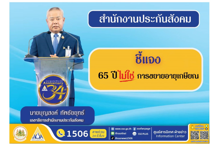 "ประกันสังคม" แจง 65 ปี ไม่ใช่อายุเกษียณ ย้ำอายุ 55 ปียื่นขอรับประโยชน์ทดแทนกรณีชราภาพได้ตามปกติ