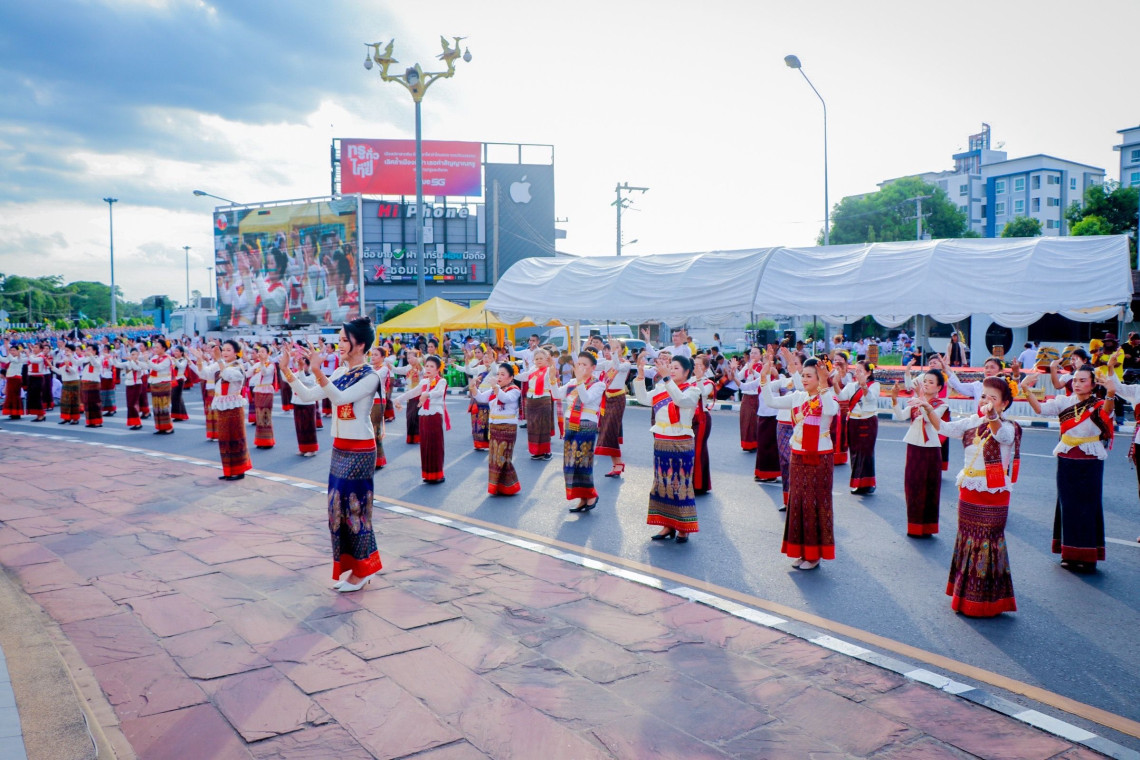 สุดยิ่งใหญ่ ! เหล่าบรรดานางรำกว่า 12,000 ชีวิต จากทั้ง 23 อำเภอของ จ.บุรีรัมย์ พร้อมใจแต่งกายผ้าไหมลายประจำถิ่น ร่วมรำบวงสรวงน้อมรำลึกในพระมหากรุณาธิคุณ ในงานพิธีวันสมเด็จพระพุทธยอดฟ้ามหาราชานุสรณ์ โดยมีนักศึกษาชั้นปีที่ 1 มหาวิทยาลัยราชภัฎบุรีรัมย์ ร่วมถวายบังคม และหน่วยงานต่างๆร่วมวางพวงมาลา