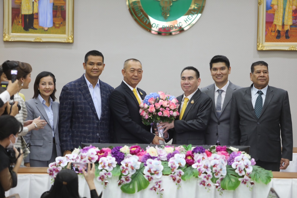 วันที่ 9ก.ย.2567 ที่สำนักงานปลัดกระทรวงสาธารณสุข จ.นนทบุรี ผู้สื่อข่าวรายงานว่า นายเฉลิมชัย ศรีอ่อน รมว.ทรัพยากรธรรมชาติและสิ่งแวดล้อม ในฐานะหัวหน้าพรรคประชาธิปัตย์ เดินทางมาร่วมแสดงความยินดีกับนายเดชอิศม์ ขาวทอง รัฐมนตรีช่วยว่าการกระทรวงสาธารณสุข และเลขาธิการพรรคประชาธิปัตย์