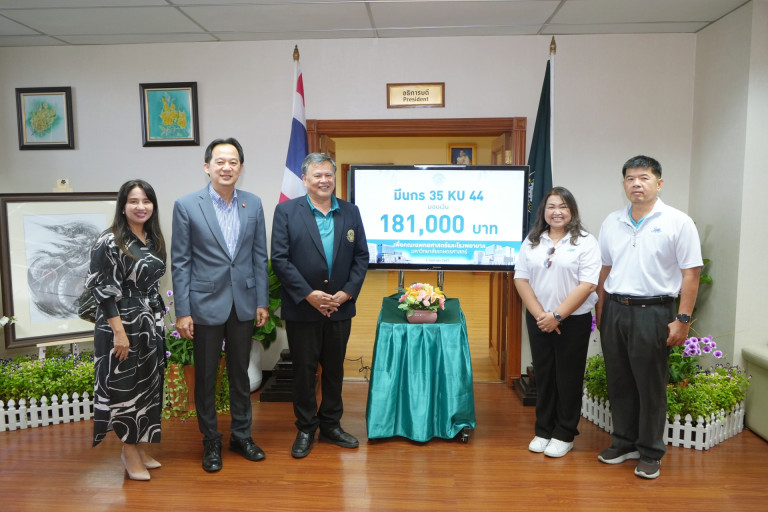 ดร.ดำรงค์ ศรีพระราม รองอธิการบดีฝ่ายบริหารและความเป็นกลางทางคาร์บอน มหาวิทยาลัยเกษตรศาสตร์ รับมอบเงินบริจาค จำนวน 181,000 บาท จากนิสิตเก่าคณะประมง มีนกร 35 KU 44 เพื่อสนับสนุนการสร้างโรงพยาบาลมหาวิทยาลัยเกษตรศาสตร์ โอกาสนี้ รศ. ดร.สมหวัง ขันตยานุวงศ์ รองอธิการบดีฝ่ายพัฒนาวิทยาศาสตร์สุขภาพและเขตพื้นที่สุพรรณบุรี และ ผศ.ดร.จิตต์โสภิณ มีระเกตุ ผู้ช่วยอธิการบดี ร่วมเป็นสักขีพยาน ณ อาคารสารนิเทศ 50 ปี มหาวิทยาลัย เกษตรศาสตร์