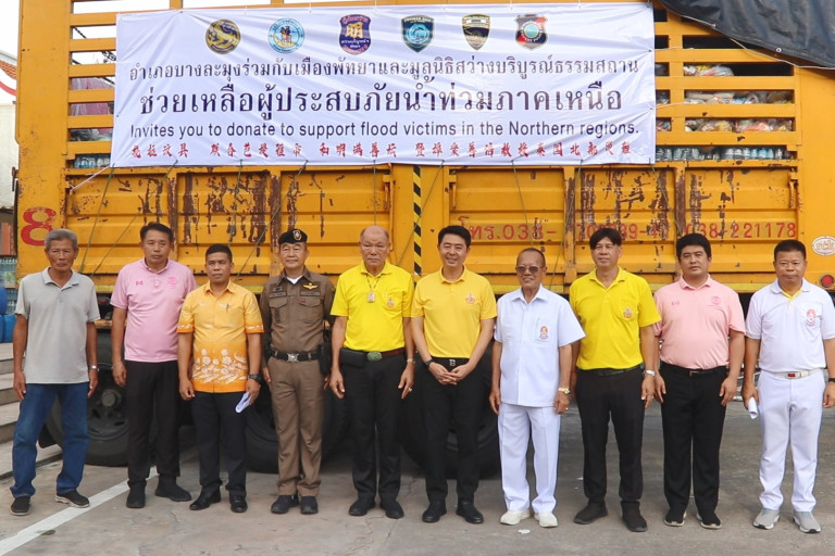 นายปรเมศวร์ งามพิเชษฐ์ นายกเมืองพัทยา กล่าวว่า ด้วยอำเภอบางละมุง ร่วมกับ เมืองพัทยา มูลนิธิสว่างบริบูรณ์ธรรมสถานเมืองพัทยา สภ.เมืองพัทยา และตม.ชลบุรี เปิดจุดรับบริจาคช่วยเหลือผู้ประสบภัยจากอุทกภัยน้ำท่วม ภาคเหนือ จำนวน 7 จุด ตั้งแต่วันที่ 30 สิงหาคม ถึงวันที่ 5 กันยายนที่ผ่านมา และได้มีการปิดรับบริจาคสิ่งของ เครื่องใช้ ข้าวสาร อาหารแห้ง และเงินสด โดยมีประชาชนในพื้นที่เมืองพัทยาได้มีการนำสิ่งของมาบริจาคช่วยเหลือผู้ประสบภัยน้ำท่วมจำนวนมาก และมียอดเงินสดที่เหลือจำนวน 573,000 บาท ทั้ง 5 หน่วยงานจึงได้นำมาจัดซื้อข้าวสาร อาหารแห้ง และสิ่งของเครื่องใช้ที่จำเป็น เพื่อนำมาจัดทำเป็นถุงยังชีพ นำไปมอบให้กับผู้ประสบภัยน้ำท่วมในครั้งนี้ ซึ่งถือเป็นครั้งที่ 4 ของการนำสิ่งของไปช่วยเหลือบรรเทาความเดือนร้อนในเบื้องต้น