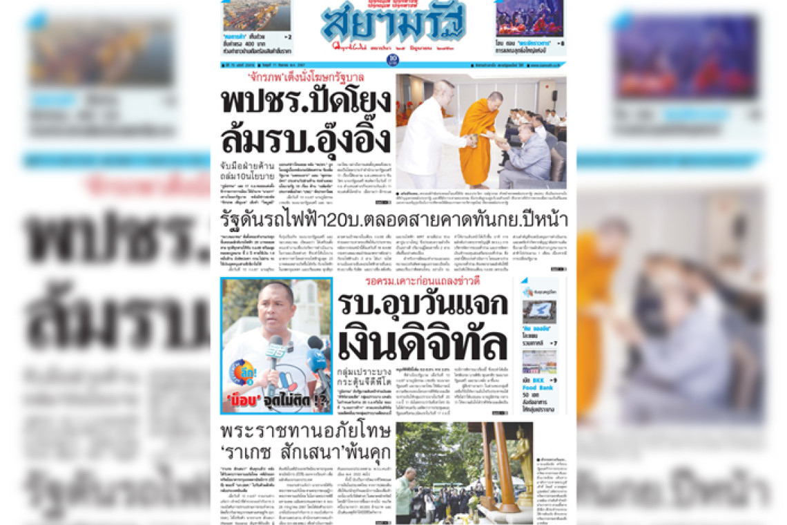 หน้า 1 หนังสือพิมพ์สยามรัฐรายวัน ฉบับวันพุธที่ 11 กันยายน 2567