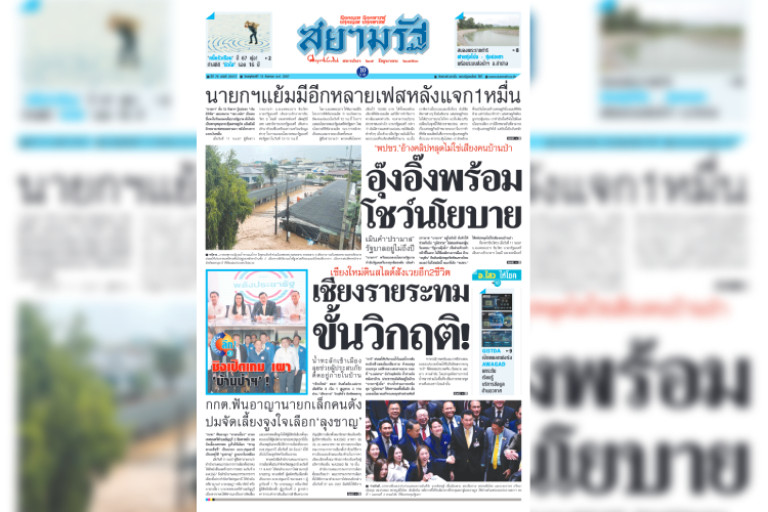 หน้า 1 หนังสือพิมพ์สยามรัฐรายวัน ฉบับวันพฤหัสบดีที่ 12 กันยายน 2567