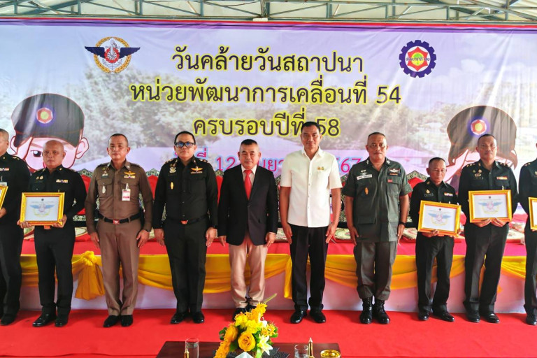 วันที่ 12 ก.ย.67 ที่ หน่วยพัฒนาการเคลื่อนที่ 54 (นพค.54) สำนักงานพัฒนาภาค 5 (สนภ.5) หน่วยบัญชาการทหารพัฒนา (นทพ.) ตำบลตาเบา อำเภอปราสาท จังหวัดสุรินทร์ พันเอก เกียรติศักดิ์ พรมตวง ผู้บังคับหน่วยพัฒนาการเคลื่อนที่ 54 สำนักงานพัฒนาภาค 5 หน่วยบัญชาการทหารพัฒนา เป็นประธานในพิธีทำบุญเนื่องในวันคล้ายวันสถาปนา หน่วย นพค.54 ครบรอบ 58 ปี เพื่ออุทิศส่วนกุศลให้กับกำลังพลที่เสียชีวิต และเพื่อความเป็นสิริมงคลแก่กำลังพลภายในหน่วย จากนั้น ได้มอบใบประกาศเกียรติคุณ เชิดชู เกียรติ ให้กับกำลังพล จำนวน 5 นาย ที่ได้เกษียณอายุราชการ ซึ่งได้ทุ่มเทกำลังกาย กำลังใจเป็นผู้มีวิริยะ อุสาหะ มุ่งมั่นตั้งใจ ในการปฏิบัติงาน สร้างคุณประโยชน์ให้กับหน่วยและประชาชน โดยมี พลตรี รณกรณ์ สายสิญจน์ อดีตผู้บังคับบัญชาหน่วยฯ พันจ่าตรี ทวีช พันธุชิน นายอำเภอปราสาท ตำรวจ ทหาร ตชด.หัวหน้าส่วนราชการ องค์กรปกครองส่วนท้องถิ่น ผู้นำชุมชน และประชาชนในพื้นที่ ร่วมเป็นเกียรติในพิธี