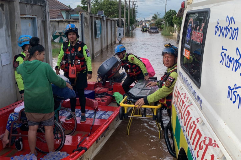 ฮ.ปภ.32 ลำเลียงส่งเครื่องอุปโภคบริโภคช่วยเหลือผู้ประสบภัย อ.แม่ฟ้าหลวง ถูกตัดขาดจากดินถล่ม