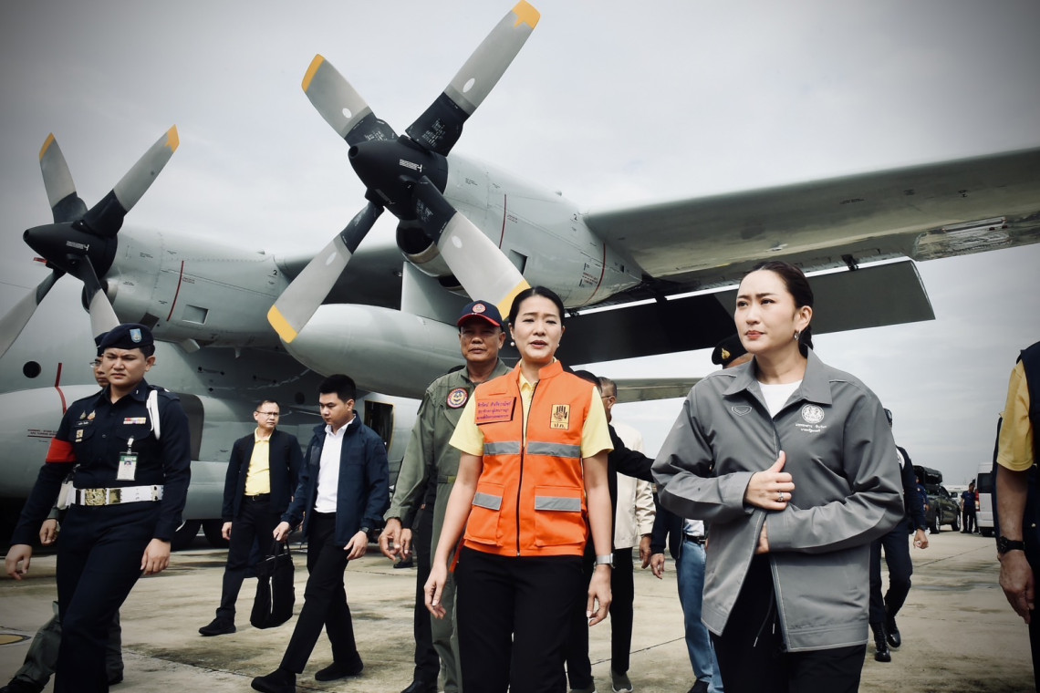 วันที่ 13 ก.ย.67 เมื่อเวลา 09.00 น.ที่ท่าอากาศยานทหาร 2 กองบิน 6 (บน.6) น.ส.แพทองธาร ชินวัตร นายกรัฐมนตรี พร้อมคณะ อาทิ นายภูมิธรรม เวชยชัย รองนายกรัฐมนตรีและรัฐมนตรีว่าการกระทรวงกลาโหม พลเอกณัฐพงษ์ นาคพาณิชย์ รัฐมนตรีช่วยว่าการกระทรวงกลาโหม นายสุริยะ จึงรุ่งเรืองกิจ รองนายกรัฐมนตรีและรัฐมนตรีว่าการกระทรวงคมนาคม นางสาวธีรรัตน์ สำเร็จวาณิช รัฐมนตรีช่วยว่าการกระทรวงมหาดไทย และนายแพทย์พรหมินทร์ เลิศสุริยเดช เลขาธิการนายกรัฐมนตรี เดินทางด้วยเครื่องบินกองทัพอากาศ โดยเดินทางออกจากท่าอากาศยานทหาร 2 กองบิน 6 (บน.6) ไปยังท่าอากาศยานนาชาติแม่ฟ้าหลวง จังหวัดเชียงราย เพื่อตรวจเยี่ยมและติดตามสถานการณ์น้ำท่วม