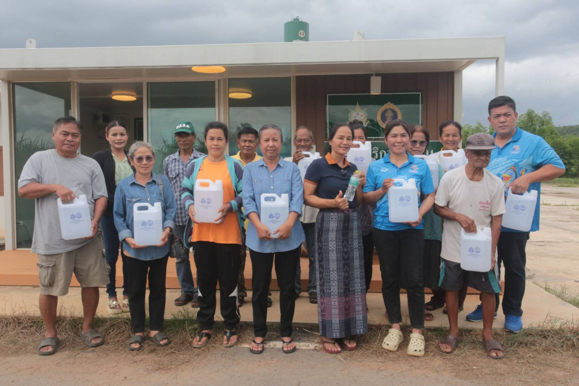 จากนั้นไปยังโครงการพัฒนาน้ำบาดาลเพื่อความมั่นคงระดับชุมชน บ้านหนองไม้แก่น หมู่ 18 ต.หนองปรือ อ.หนองปรือ จ.กาญจนบุรี นางชลธิชา หลิมย่านกวย ผู้ใหญ่บ้านหมู่ 18 บ้านหนองไม้แก่น นำชมโครงการพร้อมกล่าวว่า โครงการพัฒนาน้ำบาดาลเพื่อความมั่นคงระดับชุมชน บ้านหนองไม้แก่น ชาวบ้านได้ประโยชน์มาก เดิมทีมีน้ำไม่พอใช้ แล้งมาก ชาวบ้านใช้น้ำคลอง มีบางปีแล้งจัดๆ ต้องซื้อน้ำมาใช้ทั้งน้ำอุปโภคบริโภคและทำการเกษตร แต่ตอนนี้มีน้ำพอใช้และยังสามารถใช้ดื่มกินได้ คุณภาพน้ำดีมาก ชาวบ้านช่วยกันบริหารจัดการโครงการพัฒนาน้ำบาดาลเพื่อความมั่นคงระดับชุมชน มีการติดตั้งตู้กดน้ำแบบหยอดเหรียญ แต่ไม่ได้ประสงค์จะเอากำไร แต่ติดเพื่อให้เกิดระเบียบการใช้น้ำ มีการจัดทำบัญชีรายรับรายจ่าย กำไรส่วนหนึ่ง ถูกกันออกมาเป็นรายจ่ายคืนประโยชน์ให้ชุมชน ใช้มาประมาณ 1 ปีได้เฉลี่ยประมาณเดือนละ 6 พันบาทก็นำมาบริหารจัดการ นำมาซ่อมแซมเวลาอุปกรณ์ชำรุด ส่วนผู้สูงอายุ ผู้ยากไร้ดื่มฟรี