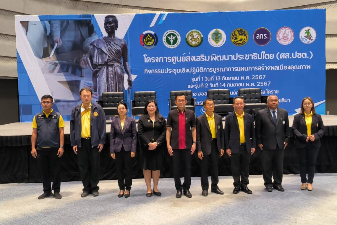 วันที่ 14 กันยายน 2567 เวลา 10.00 น.ผู้สื่อข่าวรายงาน ว่า ที่โคราชฮอลล์ ศูนย์การค้าเซ็นทรัลโคราช นายสมเกียรติ วิริยะกุลนันท์ รอง ผวจ.นครราชสีมา เป็นประธานเปิดโครงการศูนย์ส่งเสริมพัฒนาประชาธิปไตย (ศส.ปชต.) การประชุมเชิงปฏิบัติการบูรณาการแผนการสร้างพลเมืองคุณภาพ โดยมีภาคีเครือข่าย ศส.ปชต. จำนวน 400 คน ในพื้นที่ 32 อำเภอ ของ จ.นครราชสีมา ร่วมกิจกรรมรับฟังการบรรยายจากว่าที่ร้อยตรีทวี ชุนเกาะ อดีตผู้ตรวจการเลือกตั้งจังหวัดนครราชสีมา ในฐานะประธานชมรมศูนย์ ศส.ปชต.โคราช พร้อมจ่าสิบตำรวจ (จ.ส.ต) สมพงษ์ ตันดี หัวหน้ากลุ่มงานจัดการและการมีส่วนร่วม สำนักงานคณะกรรมการการเลือกตั้งประจำจังหวัด (สนง.กกต.จ.) นครราชสีมา นายโกวินทร์ เหิกขุนทด หัวหน้ากลุ่มงานสืบสวนสอบสวนและพรรคการเมือง สนง.กกต.จ.นครราชสีมา และผู้แทนกรมการปกครอง กรมการพัฒนาชุมชน กรมส่งเสริมการปกครองส่วนท้องถิ่น กรมสนับสนุนบริการสุขภาพ กรมส่งเสริมการเรียนรู้ กรมกิจการผู้สูงอายุและกรมประชาสัมพันธ์ เพื่อสร้างการรับรู้ทำความเข้าใจนโยบายและแนวทางขับเคลื่อนยุทธศาสตร์ในระบอบประชาธิปไตยอันมีพระมหากษัตริย์ทรงเป็นประมุขและการมีส่วนร่วม “กิจกรรมหมู่บ้านไม่ขายเสียง” การร่างแผนบูรณาการสร้างพลเมืองให้มีคุณภาพเกิดขึ้นจริง