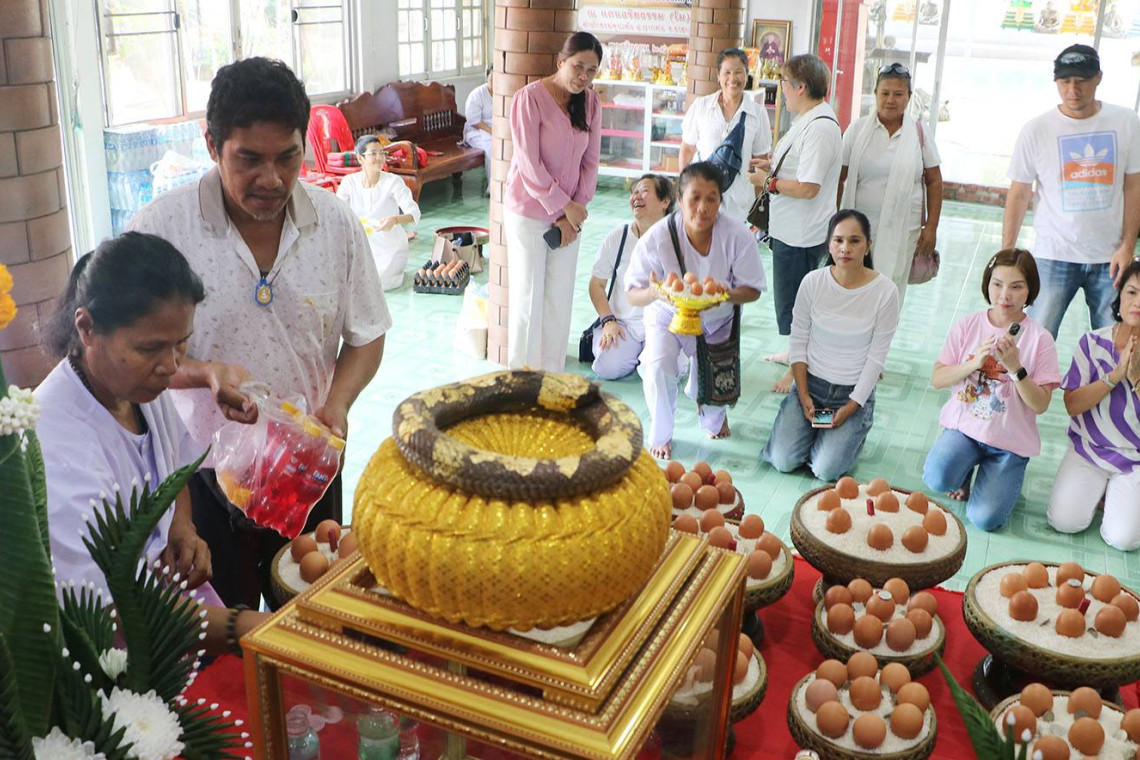 ชาวบ้านทั่วสารทิศแห่นำไข่ไก่ มาถวายบ่วงนาคบาศ ที่สำนักสงฆ์พุปะหังวงษ์วนาราม อ.ปากท่อ จ.ราชบุรี หลังมีโชคมีลาภมาแล้วหลายงวด กว้านซื้อเลขเด็ดเกลี้ยงแผง