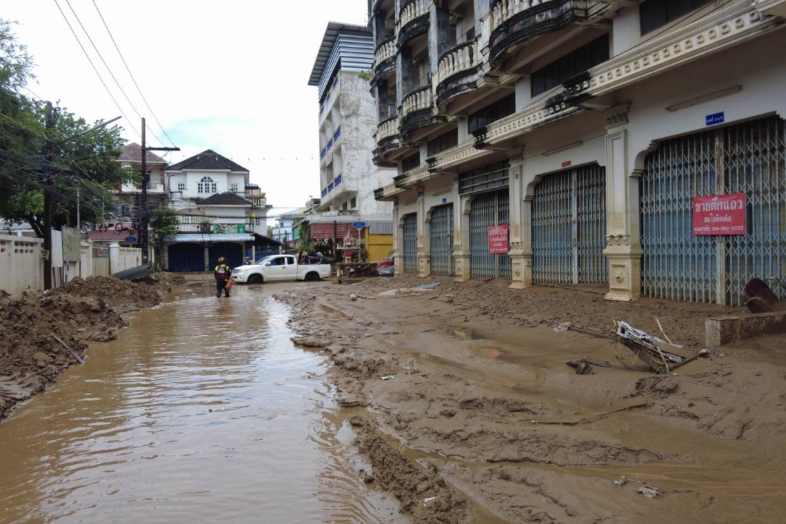 น้ำท่วมแม่สายเริ่มลด เร่งเคลียร์ดินโคลนออกจากที่อยู่อาศัย ทอ.นำ ฮ.ช่วยคนออกจากพื้นที่