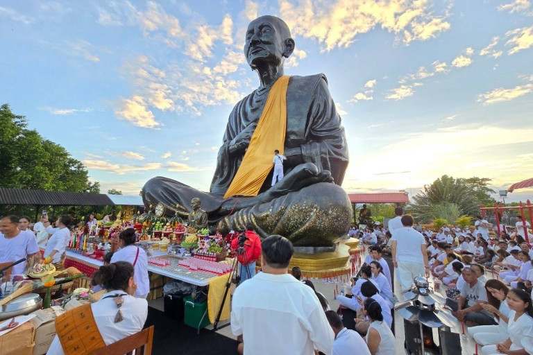 วัดตาลเจ็ดยอด ตำบลศาลาลอย อำเภอสามร้อยยอด จังหวัดประจวบคีรีขันธ์ ได้จัดงานพิธีมงคลให้กับพุทธศาสนิกชน เพื่อเป็นขวัญและกำลังใจให้มีที่ยึดเหนี่ยวจิตใจ พิธีห่มผ้าและบวงสรวงสมเด็จพุฒาจารย์(โต) พรหมรังสี องค์ใหณ่ที่สุดและสิ่งศักดิ์สิทธิ์ภายในวัด พร้อมจัดพิธีจุดเทียนมนต์อักขะแห่งองค์ท้าวเวสสุวรรณ เพื่อหนุนดวงเสริมบารมี ปัดเป่าสิ่งไม่ดีออกไปจากชีวิต โดยมี สมคิด จันทมฤก ผู้ว่าราชการจังหวัดประจวบ เป็นประธานฝ่ายฆราวาส หลวงพ่อพระมหาจำนงค์ เจ้าอาวาสวัดตาลเจ็ดยอด เป็นประธานฝ่ายสงฆ์ โดยพิธีจุดเทียนครั้งนี้ อาจารย์โอ๊ก แอดไทม์( จักรพงศ์ ภู่ทอง ) เป็นผู้ประกอบพิธี และส.จ.คชาภา โพธิรัชต์ เป็นผู้ดำเนินงานในพิธีครั้งนี้ ในงานพิธีครั้งนี้ยังมี วรวุฒิ จิรประภานน (นายอำเภอสามร้อยยอด) ปทาน พูนสวัสดิ์ (ประธานกลุ่มตักบาตรเพ็ญพุทธประจวบคีรีขันธ์) พลตรีกรพงศ์ แสงทอง (รองผู้อำนวยการศูนย์ประสาน การปฎิบัติที่หนึ่งกอ.รมน.) สราวุธ ลิ้มอรุณรัตน์ (นายกอบจ. ประจวบฯ) กฤษณา แผ่แสงจันทร์ (วัฒนธรรมจังหวัดประจวบคีรีขันธ์) พร้อมด้วยส่วนราชการและพุทธศาสนิกชนจากพื้นที่ต่างๆเข้าร่วมพิธีเพื่อความเป็นสิริมงคลมากกว่า 1000 คนโดยในพิธีจะมีอาจารย์โอ๊ก เป็นเจ้าพิธีในการบวงสรวง ขอพรบุญบารมีจากสิ่งศักดิ์สิทธิ์ภายในวัดเจ็ดยอดทุกพระองค์พร้อมกับห่มผ้าจีวรสมเด็จพุฒาจารย์(โต) พรหมรังสี เพื่อความเป็นสิริมงคล จากนั้นพิธีจุดเทียนอักขระขององค์ปู่ท้าวเวสสุวรรณเพื่อหนุนดวงเสริมบารมีปัดเป่าสิ่งชั่วร้ายออกไปจากชีวิต โดยผู้เข้าพิธีทุกคนจะต้องเขียนสลักชื่อของตนไว้ในเล่มเทียนก่อนจะประกอบพิธีบูชาจุดเทียนอธิษฐานจิตฝึกสมาธิและขอพรเพื่อสังเกตดูน้ำตาเทียมของผู้ร่วมพิธีทุกคนว่า แต่ละคนมีลักษณะน้ำตาเทียนเป็นอย่างไรและตอนเทียนหมดแล้วเป็นอย่างไร หากความหมายของน้ำตาเทียมหรือตอนเทียนไหม้หมดแล้วออกมาในทางที่ไม่ดี ผู้ทำพิธีจะมีวิธีแก้ให้เพื่อให้ความเป็นสิริมงคลต่อไป