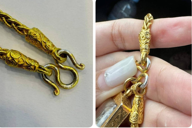 และเมื่อไถ่ออกมาใส่ได้ระยะหนึ่งและเห็นว่าทองลอก เลยเอาทองไปให้ที่ร้านทองที่ซื้อมาดูเพื่อตรวจสอบทอง ที่ร้านทองบอกว่าสร้อยทองแท้แต่ตะขอปลอมเลยรีบไปสถานที่ๆจำนำทองไว้ เขายังยืนยันบอกว่าเป็นทองแท้แต่โดนน้ำหอม เลยเห็นเป็นสีขาว ซึ่งเราก็บอกว่ามันไม่น่าใช่นะ เขาเลยบอกว่าให้ไปหาหลักฐานมาว่าตะขอเป็นทองปลอมและเขาจะรับผิดชอบทั้งหมด