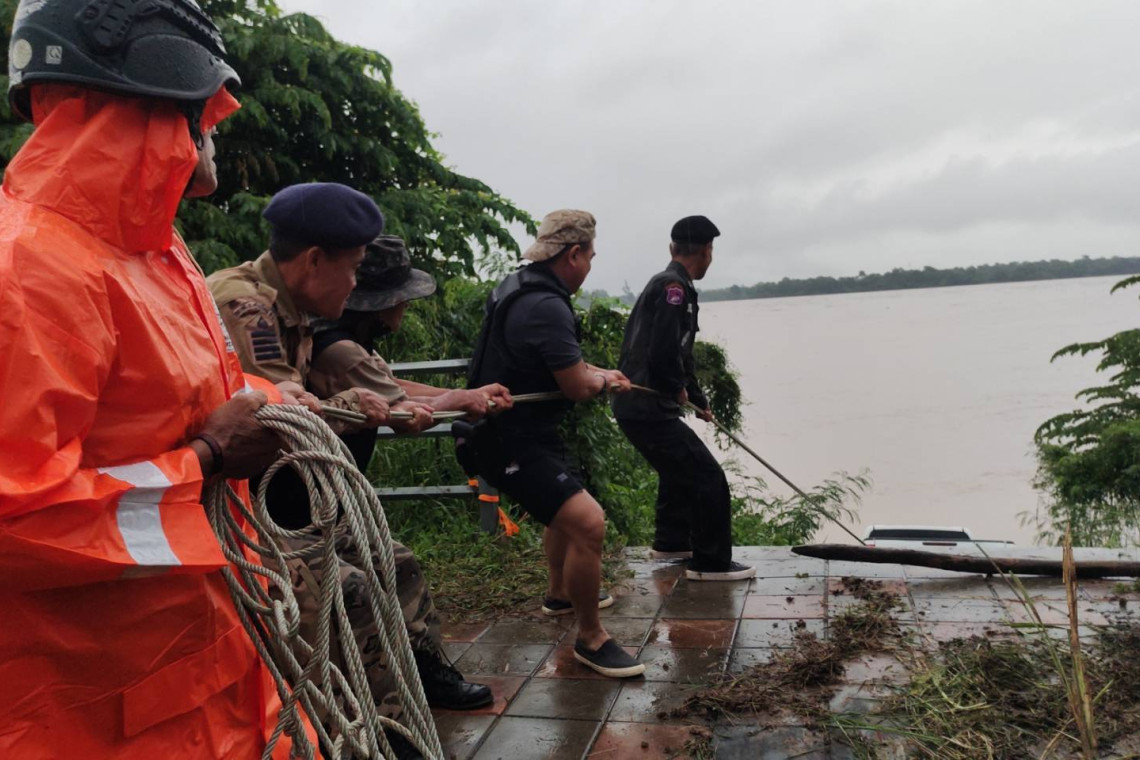 มุกดาหาร น้ำโขงสูงลักลอบนำรถยนต์ข้ามโขง