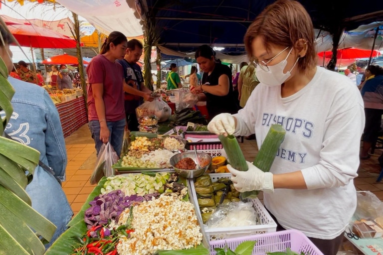 คนขอนแก่นแห่ซื้อของไหว้รับบุญข้าวสากเนืองแน่น พ่อค้า-แม่ค้าจัดเต็มอาหารอีสานครบชุด-ผลไม้ประจำถิ่นหมากส้มมอ,หมากผีผ่วน มาครบ เอาใจบรรพบุรุษเต็มที่ ในราคาเริ่มต้นชุดละ 20 บาทเท่านั้น
