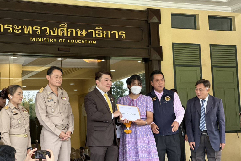 ล่าสุด วันนี้ (16 ก.ย.) ที่ กระทรวงศึกษาธิการ ถนนราชดำเนิน ทนายเจมส์-นิติธร แก้วโต รองประธานมูลนิธิรณรงค์ฯ ได้พานางสาว เบญญาภา เย็นอุดม หรือ "น้องเบญ" ผู้เสียหาย กรณีสาวฝันสลาย..สอบติดครูอันดับ 1 แต่รายชื่อหายไป ได้เดินทางมาเข้ายื่นหนังสือร้องเรียนถึงรัฐมนตรีว่าการกระทรวงศึกษาธิการ เพื่อเรียกร้องหาความเป็นธรรม โดยมี นายสิริพงศ์ อังคสกุลเกียรติ ผู้ช่วยรัฐมนตรีประจำกระทรวงศึกษาธิการ เป็นผู้รับเรื่อง