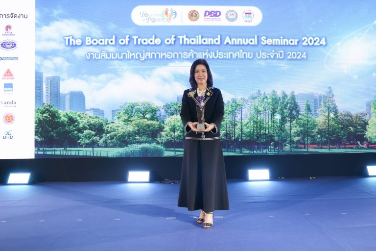 สภาหอการค้าแห่งประเทศไทย ประจำปี 2024 The Board of Trade of Thailand Annual Seminar 2024 Connect , Competitive , Sustainable ซึ่งจัดโดย กรมพัฒนาธุรกิจการค้า ร่วมกับ สภาหอการค้าแห่งประเทศไทย โดยมี นางนุสรา (อัสสกุล) บัญญัติปิยพจน์ นายกสมาคม เป็นผู้รับมอบรางวัลจาก นายพิชัย นริพทะพันธุ์ รัฐมนตรีว่าการกระทรวงพาณิชย์ ณ ห้อง World Ballroom โรงแรมเซ็นทารา แกรนด์ แอท เซ็นทรัลเวิลด์ เมื่อวันที่ 16 กันยายน 2567
