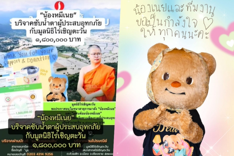 เป็นอีกเรื่องราวดีๆในโลกออนไลน์ เมื่อ TikTok@yellowman_arayan ออกมาโพสต์คลิป "น้องหมีเนย" มาสคอตสุดน่ารักประจำร้านขนม Butterbear ร่วมแบ่งปันน้ำใจให้ผู้ประสบภัยน้ำท่วมใน จ.เชียงราย พร้อมเขียนแคปชั่นว่า "น้องหมีเนย" บริจาคซับน้ำตาผู้ประสบอุทกภัยกับมูลนิธิไร่เชิญตะวัน 1,800,000 บาท #รวมใจช่วยภัยน้ำท่วมกับท่านว #เชียงราย #น้ำท่วม