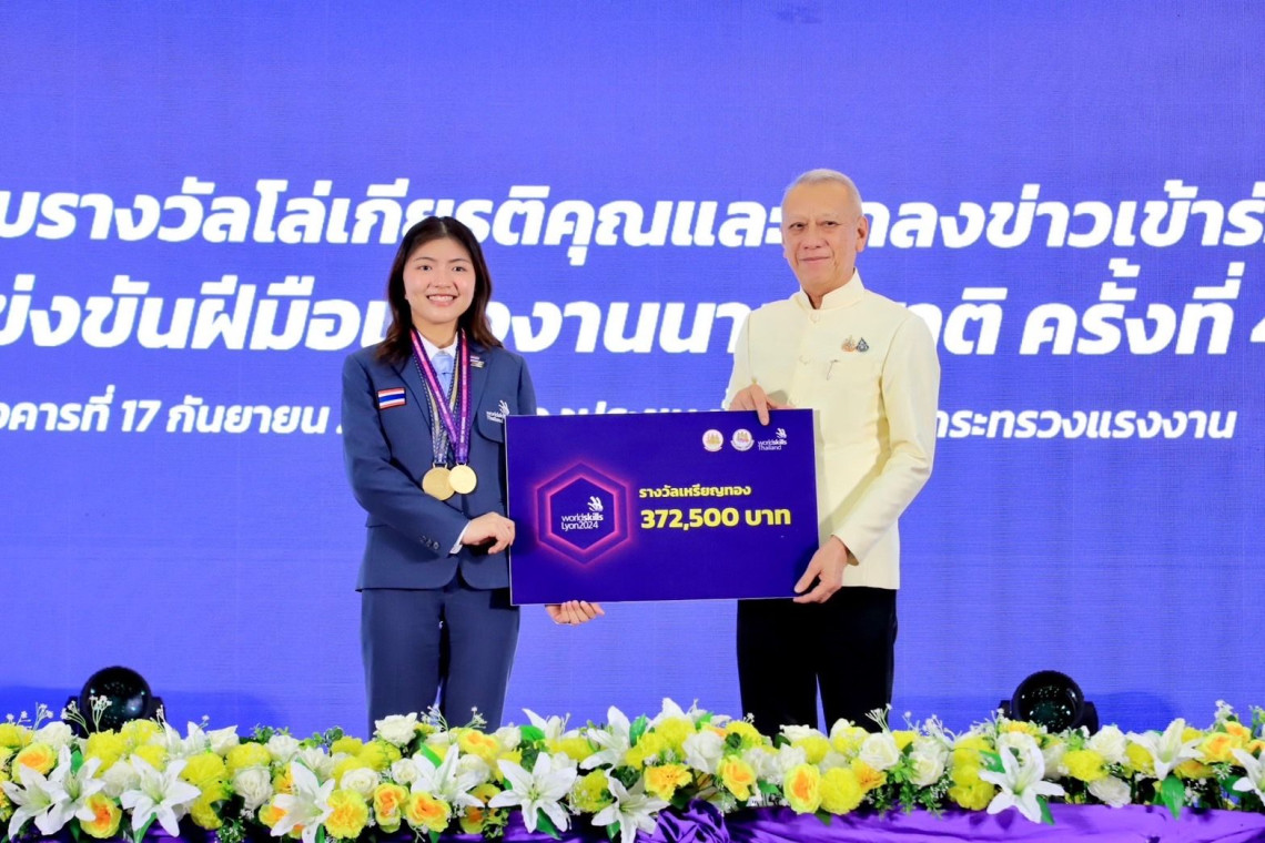 รมว.แรงงาน นายพิพัฒน์ รัชกิจประการ เป็นประธานมอบรางวัล ใบเกียรติบัตรผู้เข้าแข่งขัน WorldSkills Lyon 2024 และมอบโล่ประกาศเกียรติคุณผู้สนับสนุนการแข่งขันฯ หลังเยาวชนสร้างชื่อเสียงให้ประเทศไทยคว้า 1 เหรียญทอง 1 เหรียญเงินและ 7 เหรียญฝีมือยอดเยี่ยม พร้อมอัดฉีดรางวัลรวมมูลค่ารวมกว่าล้านบาท โดยมีนายไพโรจน์ โชติกเสถียร ปลัดกระทรวงแรงงาน นางสาวบุปผา เรืองสุด อธิบดีกรมพัฒนาฝีมือแรงงาน ผู้บริหารกระทรวงแรงงาน ผู้บริหารกรมพัฒนาฝีมือแรงงาน ร่วมเป็นเกียรติในพิธี ณ ห้องประชุมกระทรวงแรงงาน ชั้น 5 อาคารกระทรวงแรงงาน