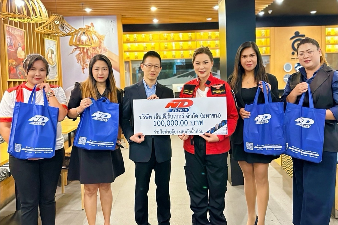 บริษัท เอ็น.ดี.รับเบอร์ จำกัด(มหาชน) หรือ NDR โดย ชัยสิทธิ์ สัมฤทธิวณิชชา กรรมการผู้จัดการ ร่วมสนับสนุนมอบเงินบริจาค จำนวน 100,000 บาท เพื่อช่วยเหลือและฟื้นฟูผู้ประสบอุทกภัยแก่มูลนิธิองค์กรทำดี โดย ปนัดดา วงศ์ผู้ดี ทั้งนี้ ชัยสิทธิ์ สัมฤทธิวณิชชา ยังร่วมมอบเงินเพื่อสมทบในนามส่วนตัวจำนวน 100,000 บาท
