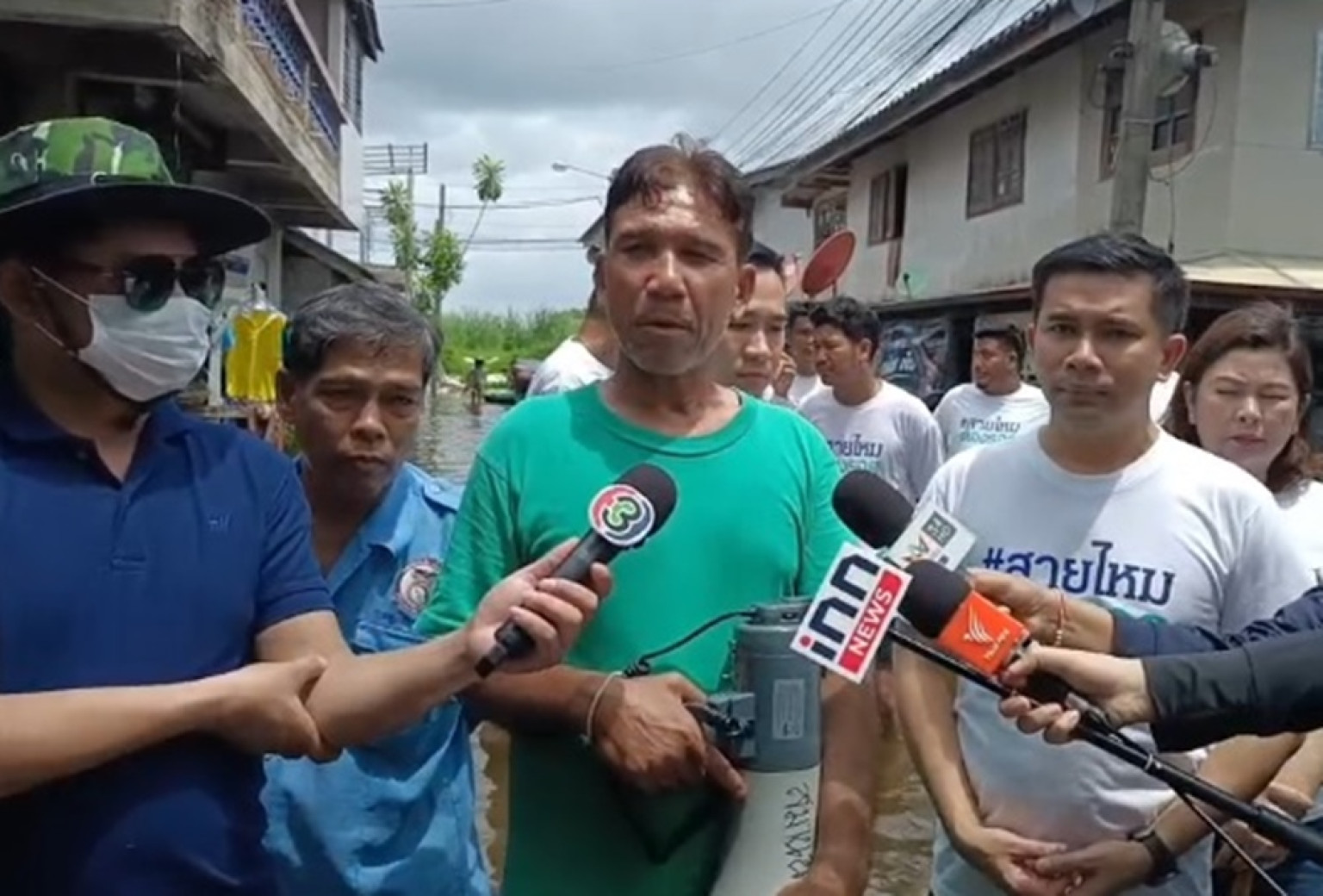 วันนี้(22 ก.ย.67)นายเอกภพ เเหลืองประเสริฐ ที่ปรึกษารัฐมนตรีว่าการกระทรวงมหาดไทยและผู้ก่อตั้งเพจสายไหมต้องรอด นำทีมงานสายไหมต้องรอดลงพื้นที่ชุมชนพรพระร่วงพัฒนา สุขาภิบาล 5 ซอย 32 แยก 7 ที่ประสบปัญหาน้ำท่วมขังมาไม่ต่ำกว่า 2 วันหลังจากเกิดฝนตกอย่างหนัก รวมทั้งเป็นพื้นที่แอ่งกระทะที่ต้องรองรับน้ำที่เออล้นจากบึง 3 บึงที่อยู่บริเวณโดยรอบชุมชน สร้างปัญหาความเดือดร้อนให้แก่ชาวบ้านเป็นอย่างมาก บางจุดน้ำท่วมสูงถึง 60 เซนติเมตรและน้ำเริ่มส่งกลิ่นเน่าเหม็น คนในชุมชนต้องลุยน้ำออกมาใช้ชีวิตบริเวณด้านนอกทุกวัน เพราะน้ำเข้าท่วมถึงในบ้าน โดยทีมงานสายไหมต้องรอดได้นำชุดถุงยังชีพ 30 ชุดแพ็คน้ำ 30 แพ็คและถังแก๊ส 3 ถังมามอบให้แก่ชุมชน