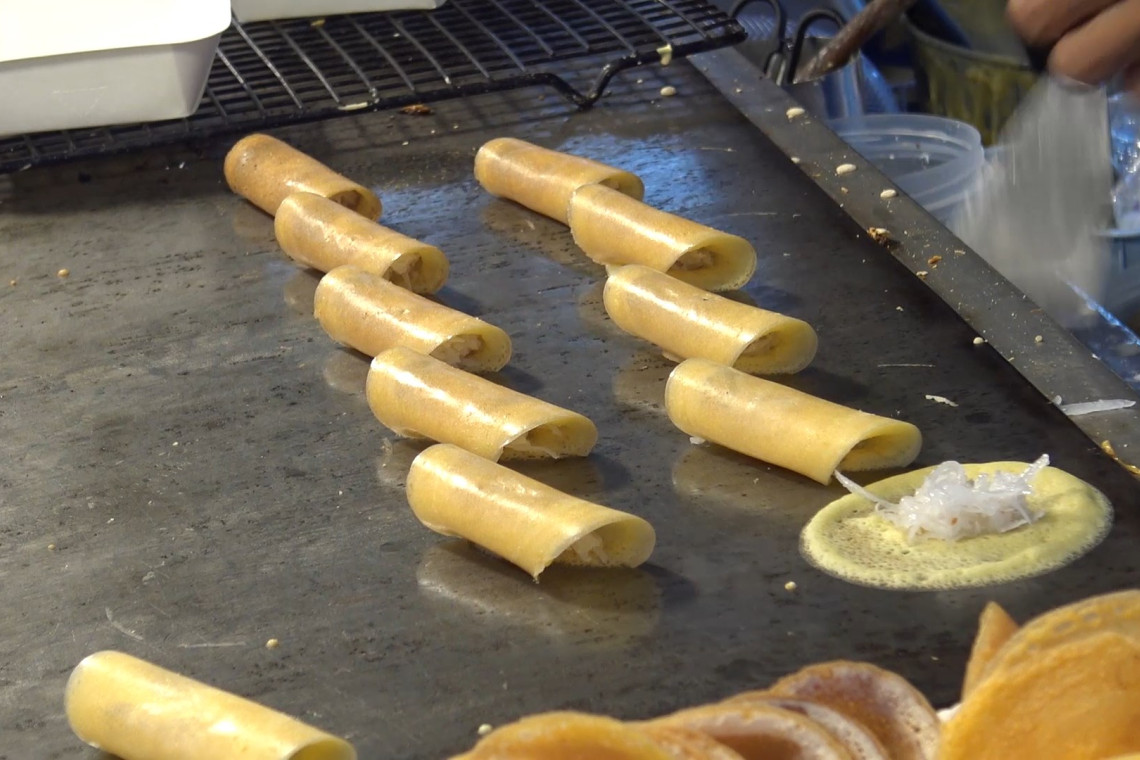 สีสัน.หนมถังแตก 8 เตา ชิ้นละ 10 บาท หนมเบื้องกรอบ หนมเบื้องครีม หนมโตเกียว ชิ้นละ 2 บาท เจ้าดังเมืองสงขลา ยังมีขายและยังมีให้กิน แถมอร่อยด้วย ที่สืบทอดจากครอบครัวรุ่นอาม่า มาถึงรุ่นที่ 3 และยังขายราคาอยู่ที่ชิ้นละ 2 บาท ลูกค้าเพียบ มี 10 บาทก็สามารถอิ่มได้