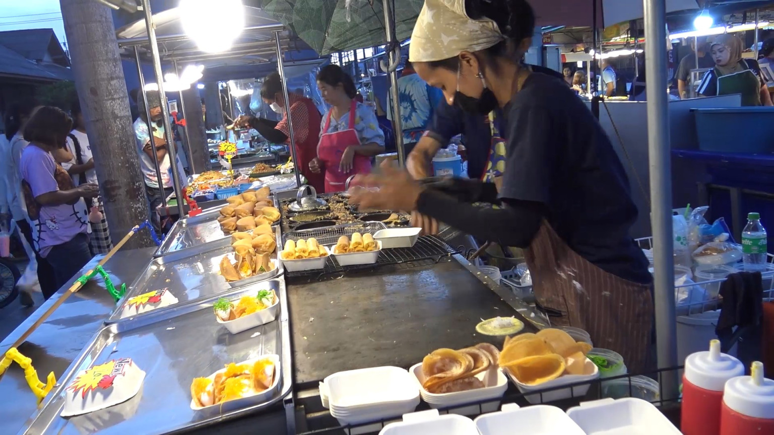 -ขนมโตเกียว ราคาอยู่ที่ชิ้นละ 2 บาท ก็มีไส้ ทั้งมีไส้กรอกไก่ ปูอัด เนยครีม สังขยา มะพร้าว นอกจากนี้ยังมีขนมเบื้องครีมสดชุดละ 20 บาท 5 ชิ้น เพื่อเป็นทางเลือกให้กับลูกค้า สามารถเลือกซื้อได้ตามใจชอบ มี 10 บาทก็สามารถอิ่มได้
